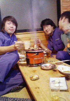 ホルモン焼きで一杯、最高でーす!!!