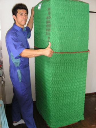 大物類は、この様に梱包致します。ですからお客様にて、引き出しやガラス扉などをガムテープで止めたりしないで大丈夫です。(当スタッフにおまかせ下さい。)